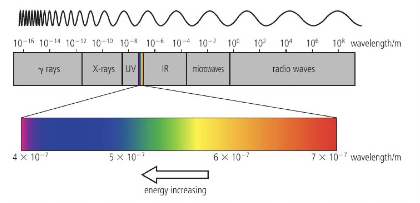 electromagnetic radiation (EMR) exists on a spectrum, as shown below