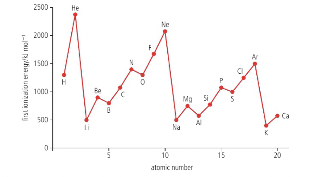 trends in first ionisation energy across periods account for the existence of main energy levels and sublevels in atoms