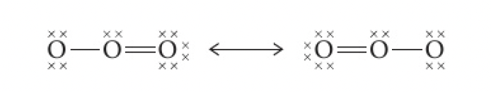 these structures suggest that the molecule should contain 1 double bond and 1 single bond, which would have differing bond strengths and lengths. however, experimental data shows that ozone contains two equal oxygen-oxygen bonds, intermediate in length and strength between single and double bonds.