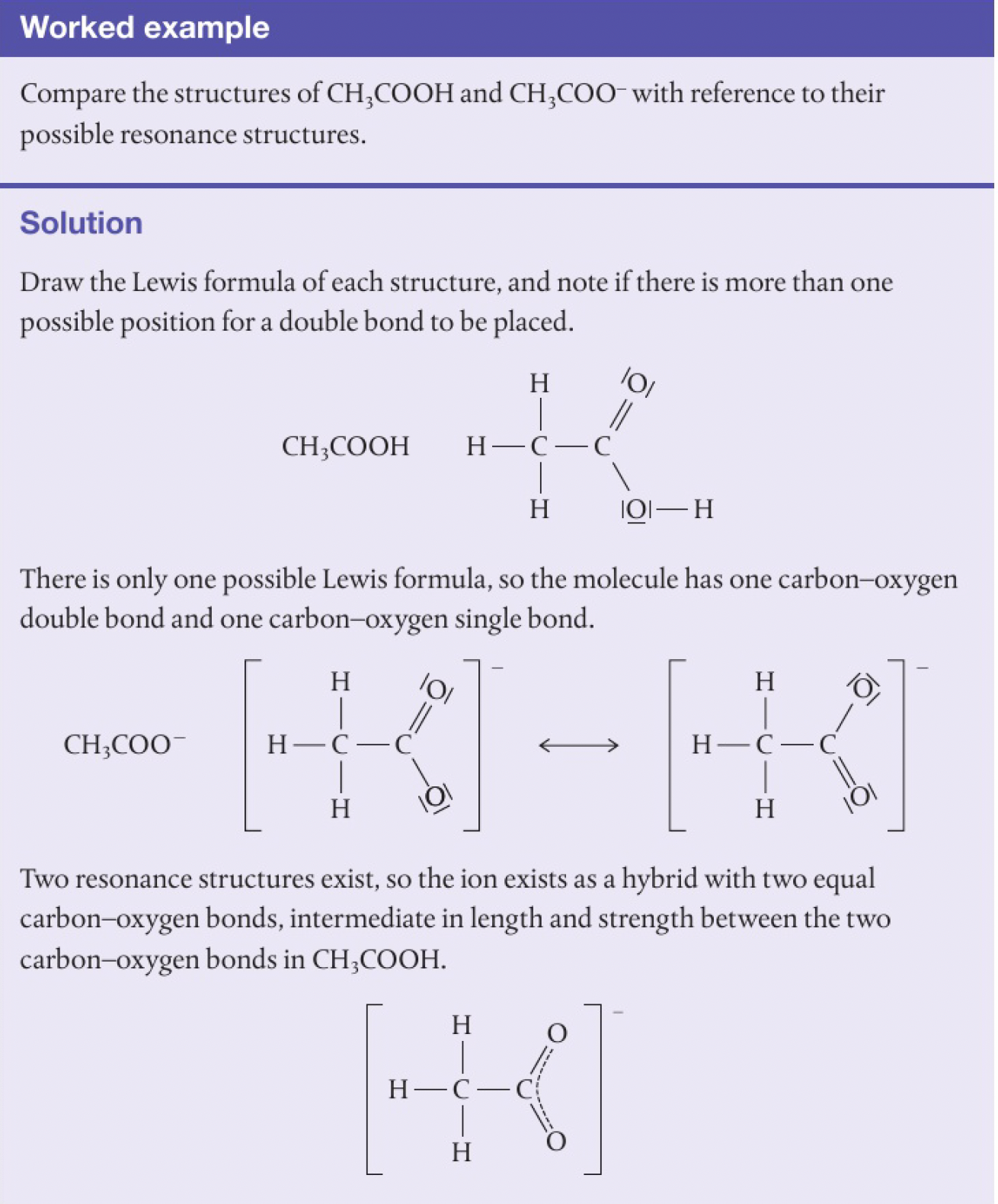 note: lone pairs of electrons are not shown on the structure of a resonance hybrid as they are involved in the process of delocalisation so do not have a fixed position.