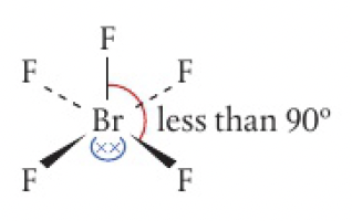 the position of bonding and non-bonding pairs of electrons in molecules or ions with five electron domains can be predicted by identifying the arrangement with the lowest number of lone pair-lone pair 90