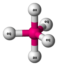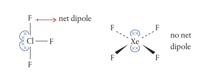 - electrons located in equatorial position to minimise repulsion