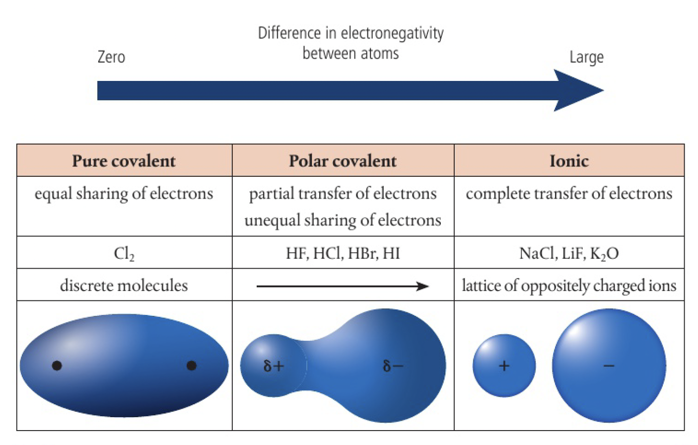Structure 2.2.5 - bond polarity results from the difference in electronegativities of the bonded atoms
