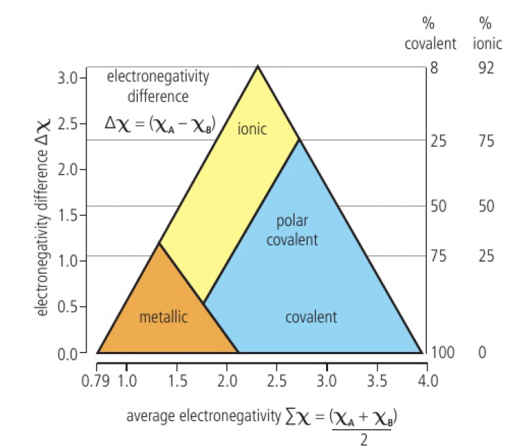 Structure 2.4.1 - bonding is best described as a continuum between the ionic, covalent and metallic models, and can be represented by a bonding triangle