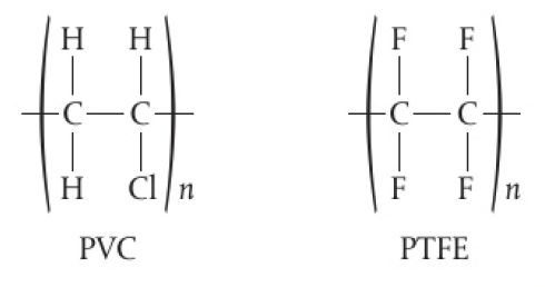 polychloroethene or poly vinyl chloride and polytetrafluoroethene
