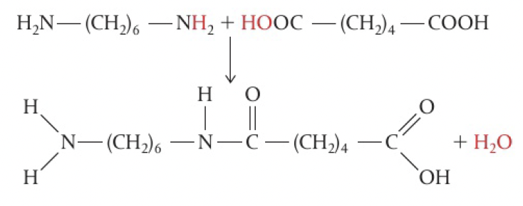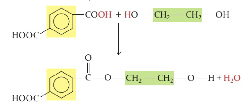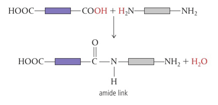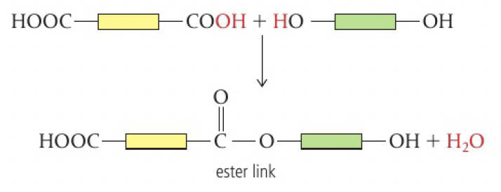 Structure 2.4.6 - condensation polymers form by the reaction between functional groups in each monomer with the release of a small molecule