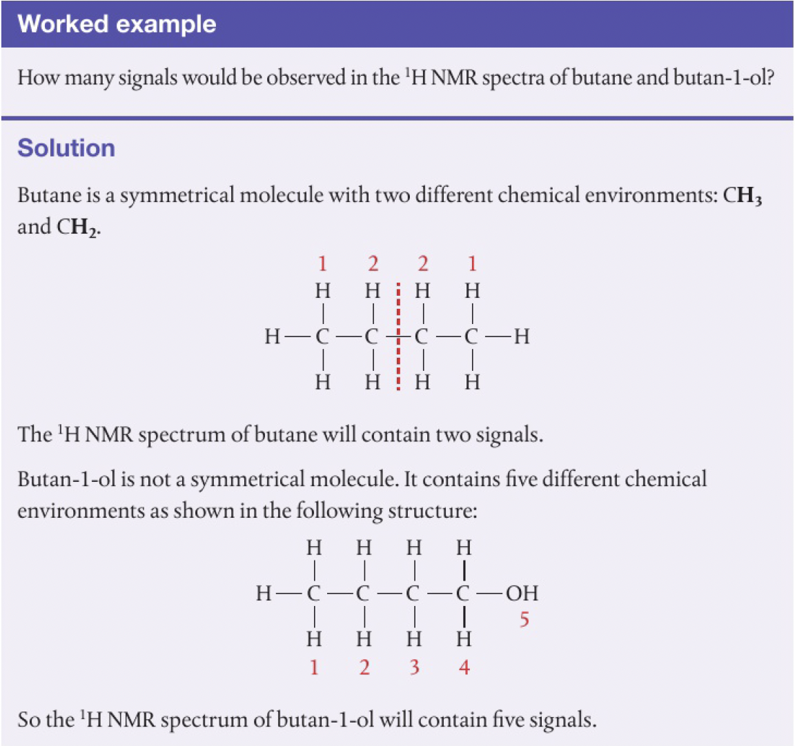 Structure 3.2.10 - proton nuclear magnetic resonance ( ) spectroscopy gives information on the different chemical environments of hydrogen atoms in a molecule