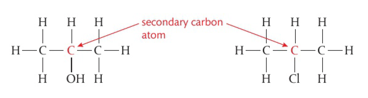 a secondary carbon atom is attached to the functional group and to 1 hydrogen atom and 2 alkyl groups. these molecules are known as secondary molecules.