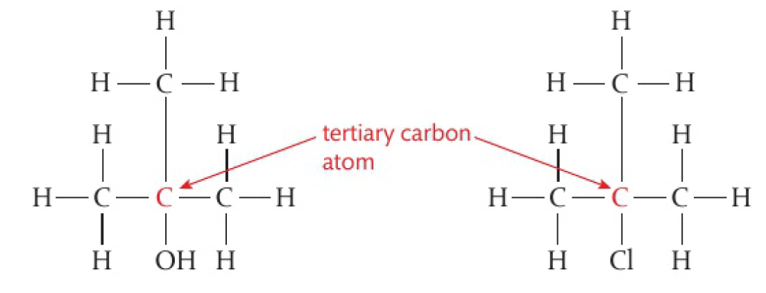 a tertiary carbon atom is attached to the functional group and also bonded to 3 alkyl groups, 0 hydrogen atoms. these molecules are known as tertiary molecules