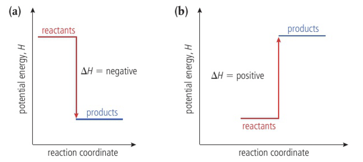 some reactions are endothermic, involving a heat transfer from the surroundings to the system. here, the products have more stored potential energy than the reactants, and