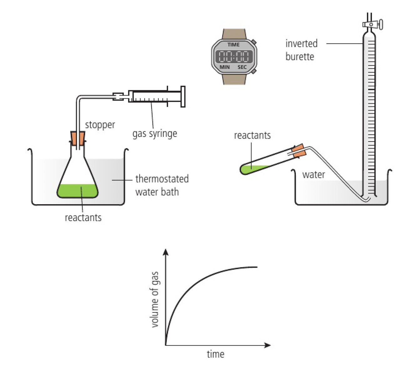 collecting the gas and measuring the change in volume at regular time intervals enables a graph to be plotted of volume against time