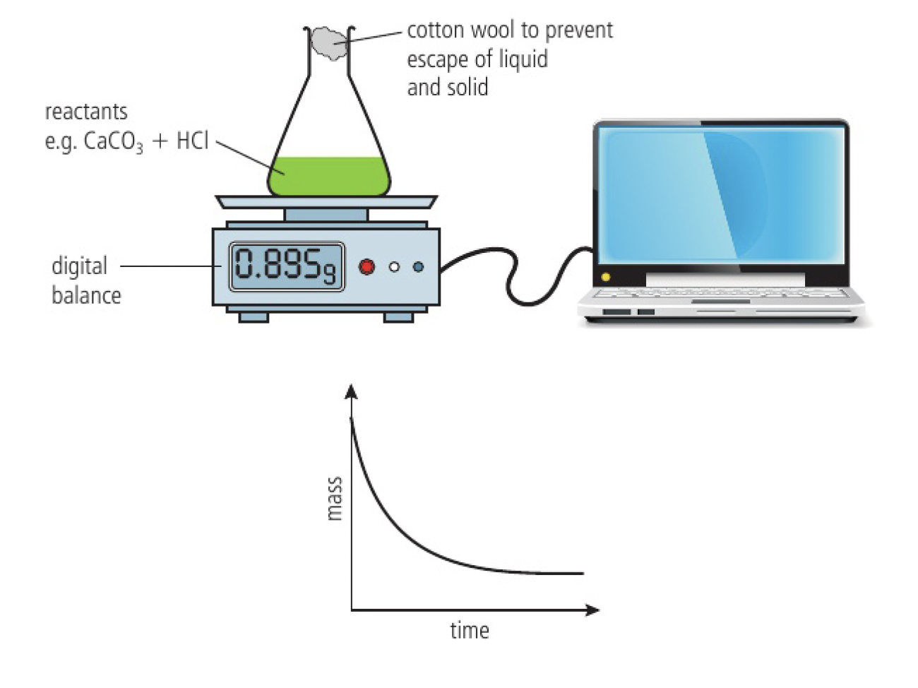 it might be convenient to measure changes in mass with a balance. if the reaction is giving off a gas, the decrease in mass can be measured directly and continuously.