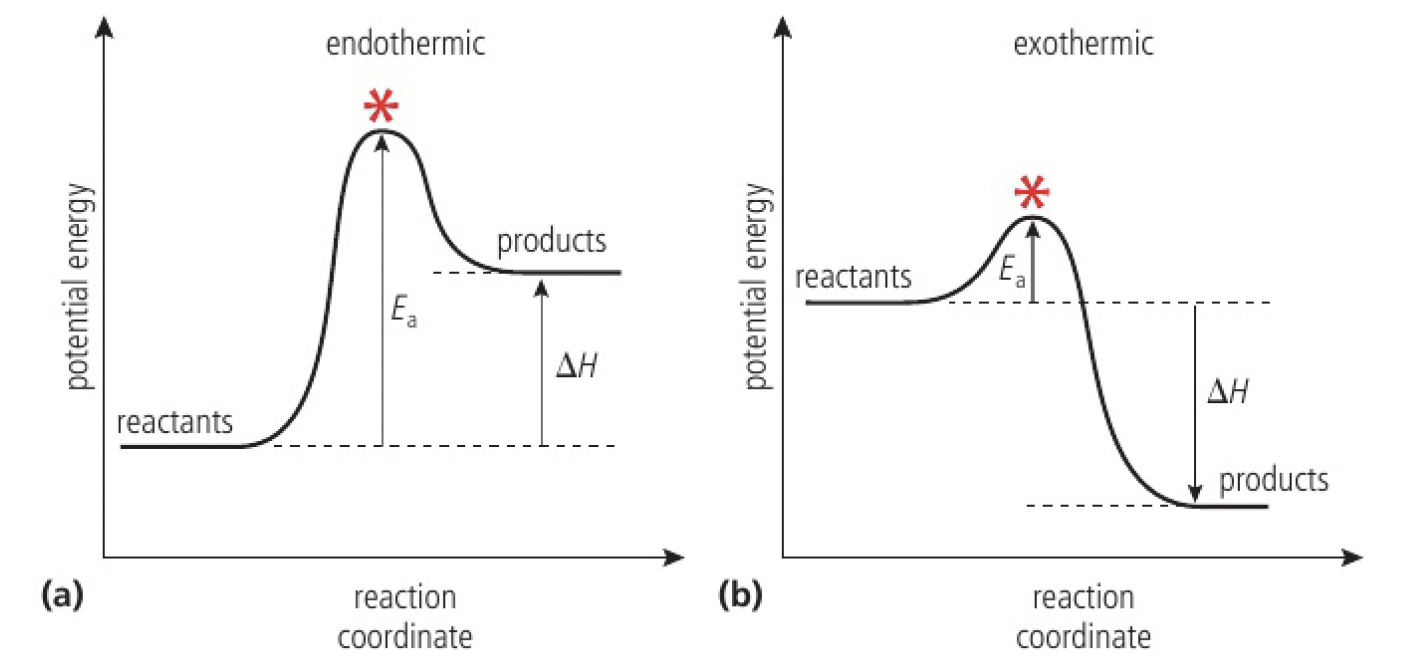 - when the activation energy is supplied, the reactants achieve the transition state from which products can form
