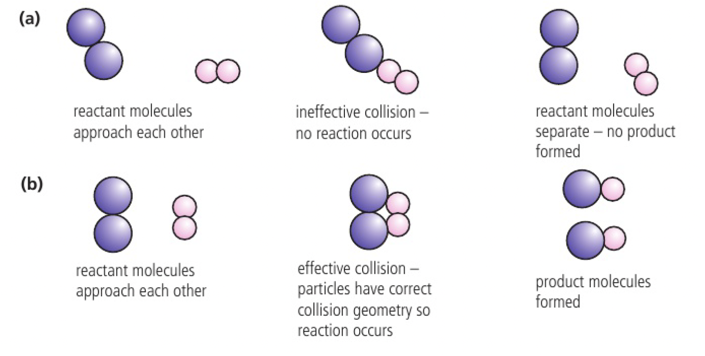 the rate of a reaction depends on the frequency of collisions that occur between particles possessing both values of kinetic energy greater than the activation energy and appropriate collision geometry