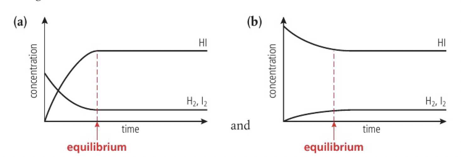 - the equilibrium is described as dynamic as both forward and backward reactions are still occurring despite their concentrations remaining constant