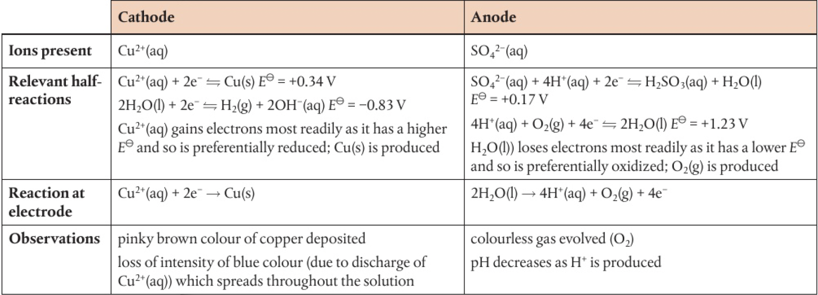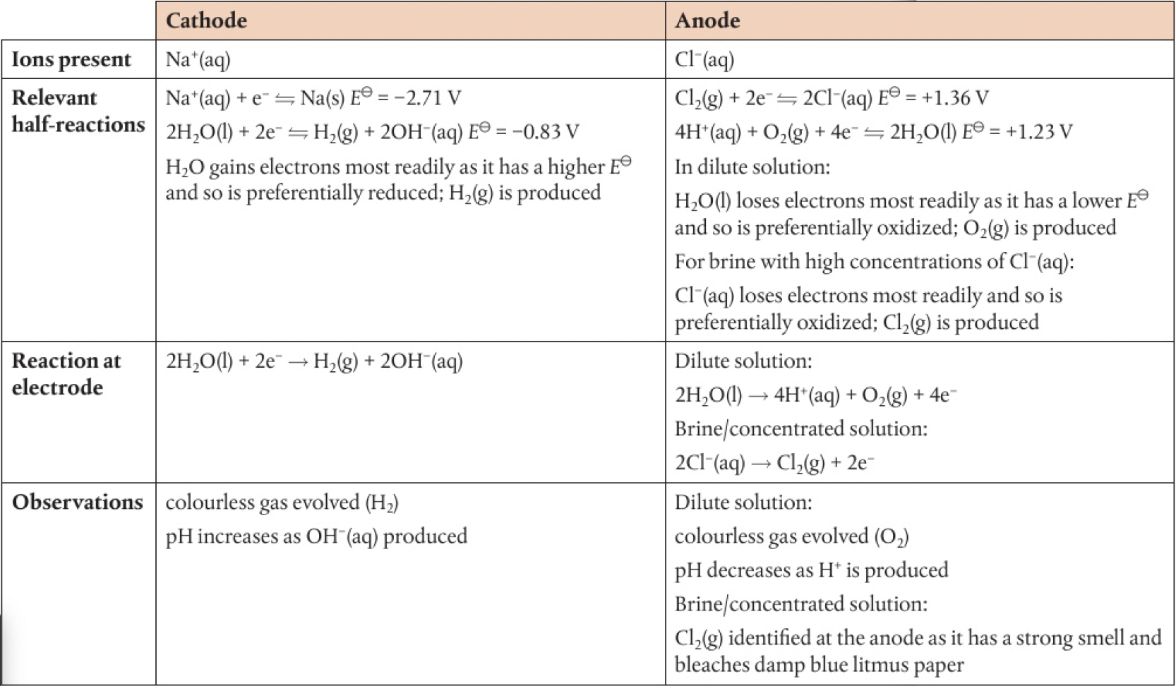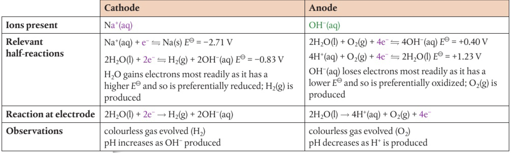 Reactivity 3.2.15 - during electrolysis of aqueous solutions, competing reactions can occur at the anode and cathode, including the oxidation and reduction of water
