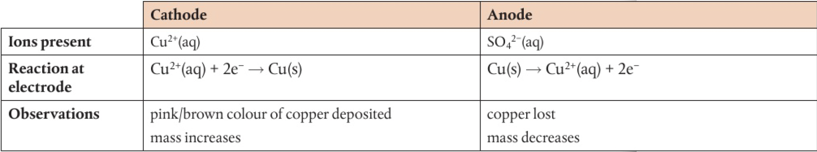 - the anode erodes as copper ions are formed and transferred to the cathode