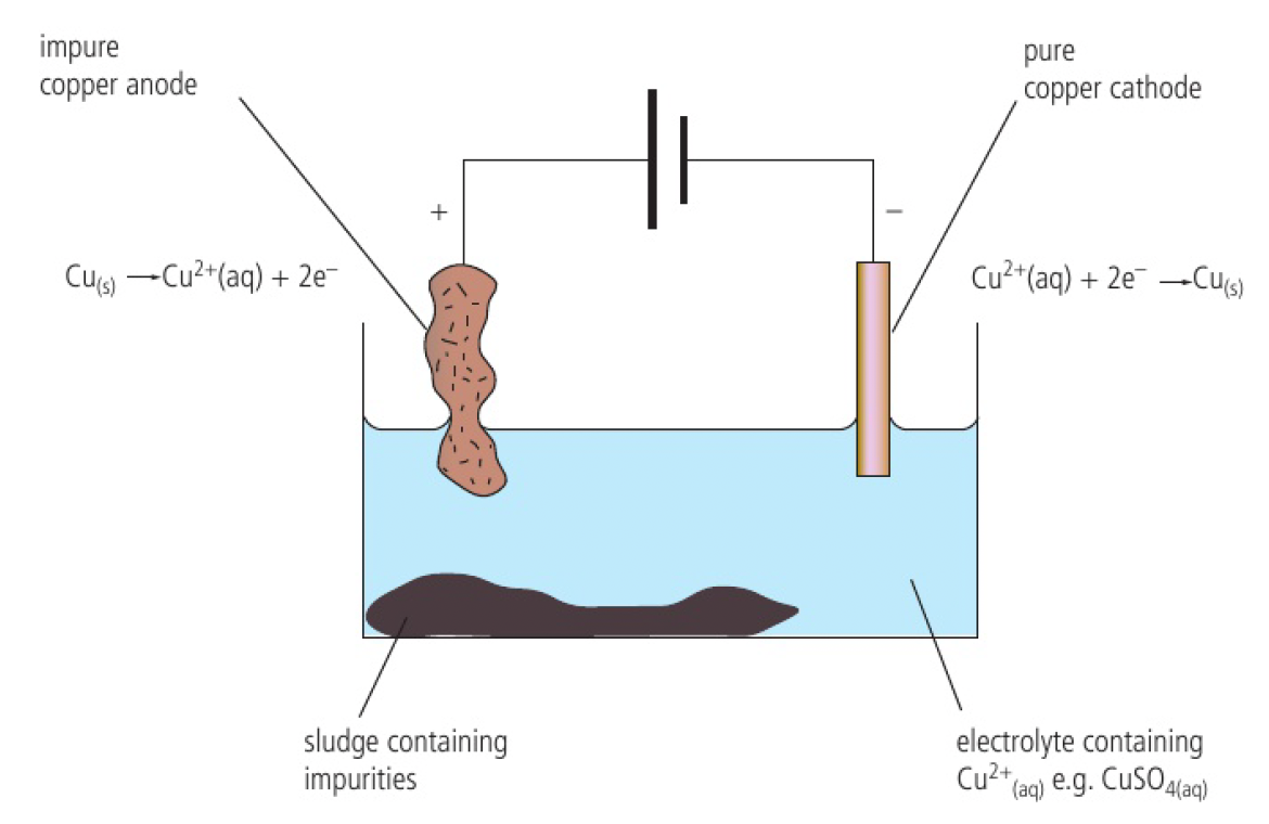 - the impurities leave the anode as the copper ions are formed and fall to the bottom of the cell