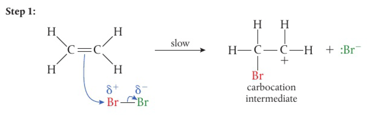 this step is slow, resulting in the formation of an unstable carbocation intermediate