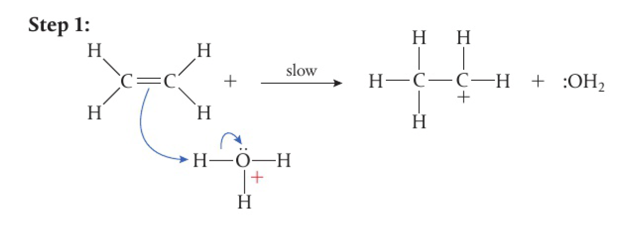 electrons in the alkene are attracted to an electrophilic hydrogen - heterolytic fission of the