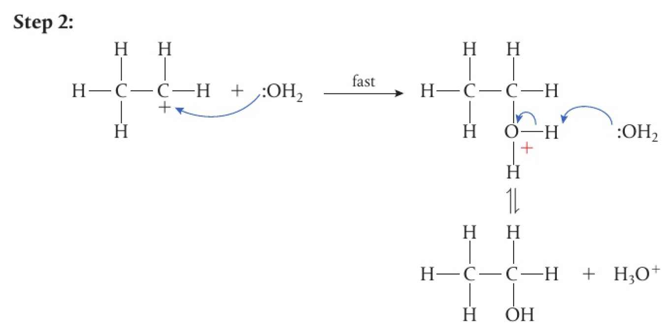 - water is a weak electrophile and does not directly undergo addition reactions with alkenes