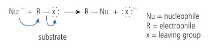 Reactivity 3.4.2 - in a nucleophilic substitution reaction, a nucleophile donates an electron pair to form a new bond, as another bond breaks producing a leaving group